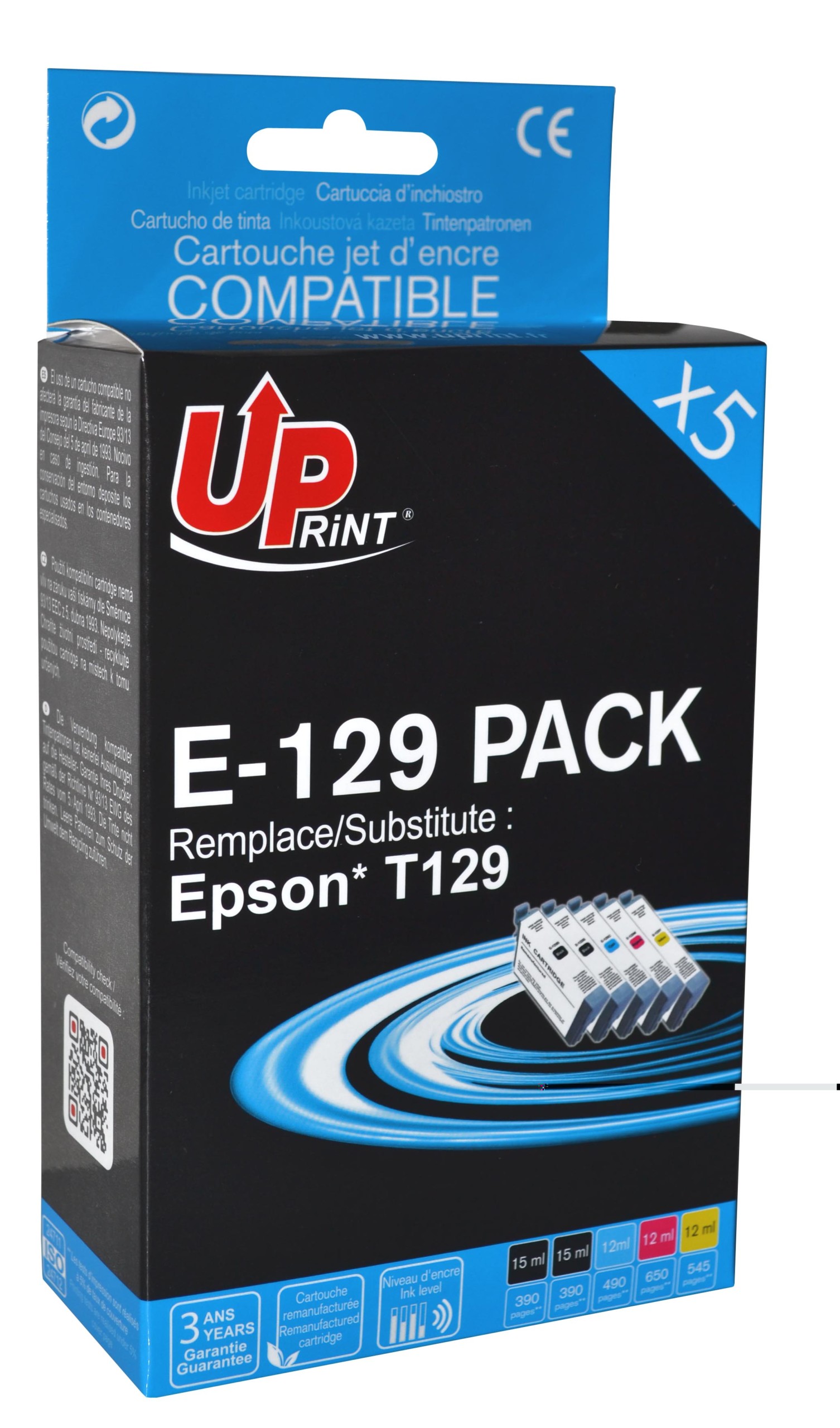 UP-E-129-PACK 5|EPSON STY B42/BX525/625/925-T129 (2BK+C+M+Y)-REMA